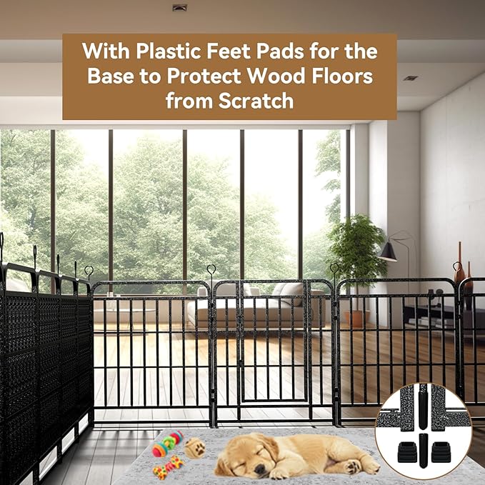 - 【Safe Enclosed & Expandable Area】The heavy-duty dog pen is sturdy and durable, pet fence provides a safe enclosed area for your pups play, run around and get the exercise they need, each panel is separate, which can be combined repeatedly for larger square footage, this temp fencing makes potty and house training much easier