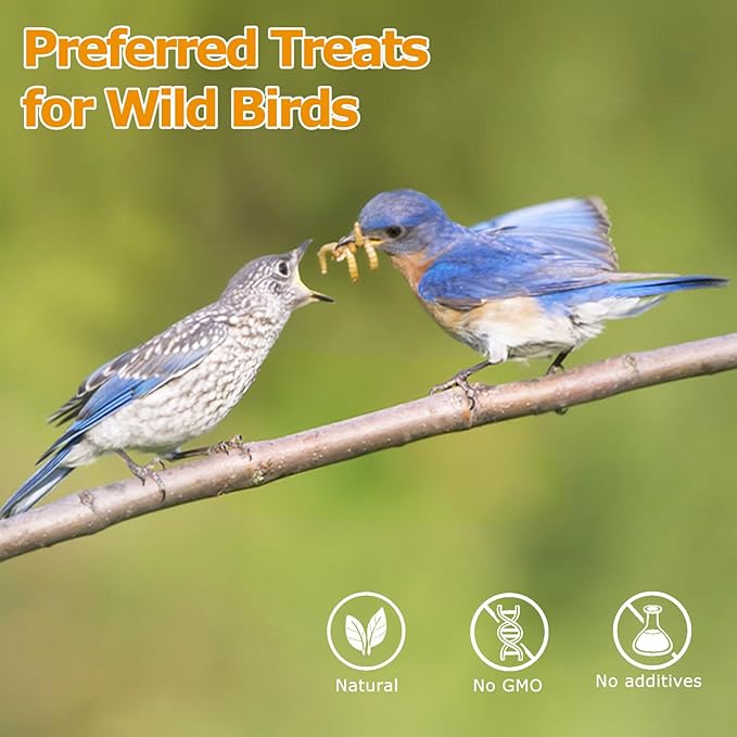 - 100% Natural & Safe: Meal worms go through rigorous quality inspections and are raised on top-quality feed. High temperature drying, crispy taste. NON-GMO and no additives. Suitable for a variety of species including Chickens, birds, hens, turkeys, ducks, blue birds, reptile & amphibian larvae food