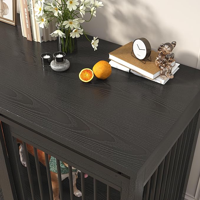 - Double Doors 4 Metal Locks: Double sliding metal mesh barn doors design allows you to enter and exit easily for cleaning or interaction. Double dog crate furniture equipped with 4 vertical slide locks to ensure your dog cannot escape easily. Our black dog crate furniture is ideal for small, medium, and large dog breeds