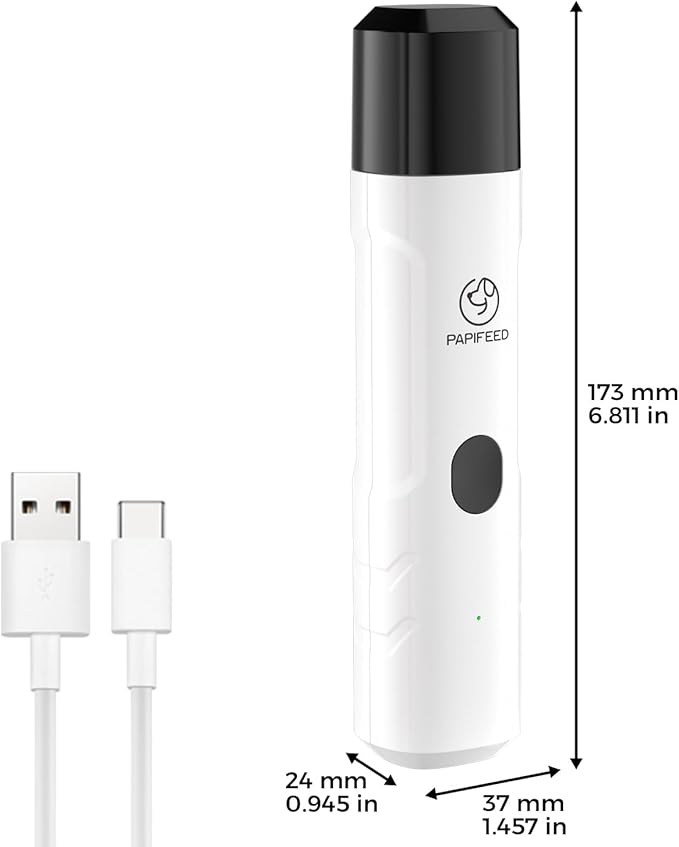 - 🐾【Rechargeable & User-Friendly Design】Experience up to 8 hours of continuous operation time and up to 1 month of standby function, providing uninterrupted trimming care and flexible nail care anytime, anywhere. Type-C charging port, convenient for charging in any situation. PAPIFED dog nail clipper adopts ergonomic design, providing comfortable grip and easy operation.