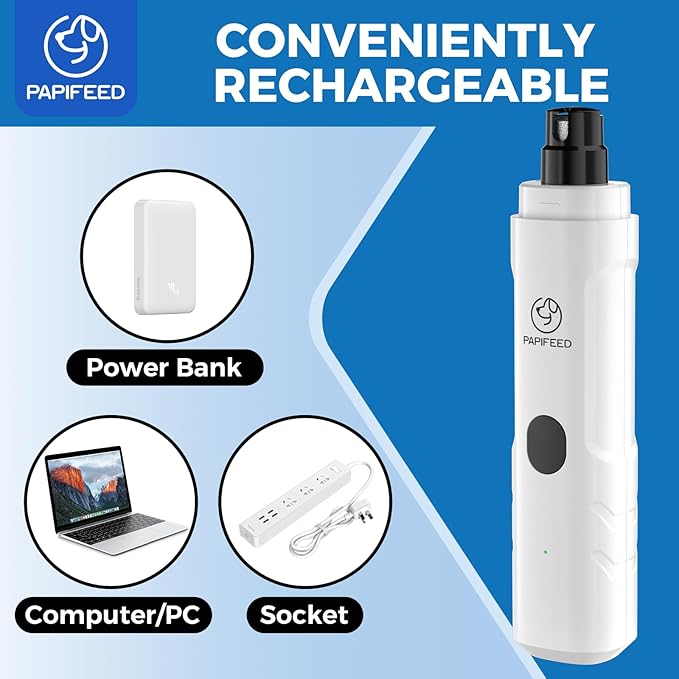 - 🐾【TYPE-C CHARGING, MORE EFFICIENT POLISHING】"The Type-C interface is compatible with mobile phone chargers, so you can charge it whenever you want, and say goodbye to the cumbersome replacement of traditional batteries. Using the PAPIFEED dog nail grinder, you can experience the convenience brought by continuous operation time and ultra-long standby time, providing an uninterrupted beauty process and flexible nail care."