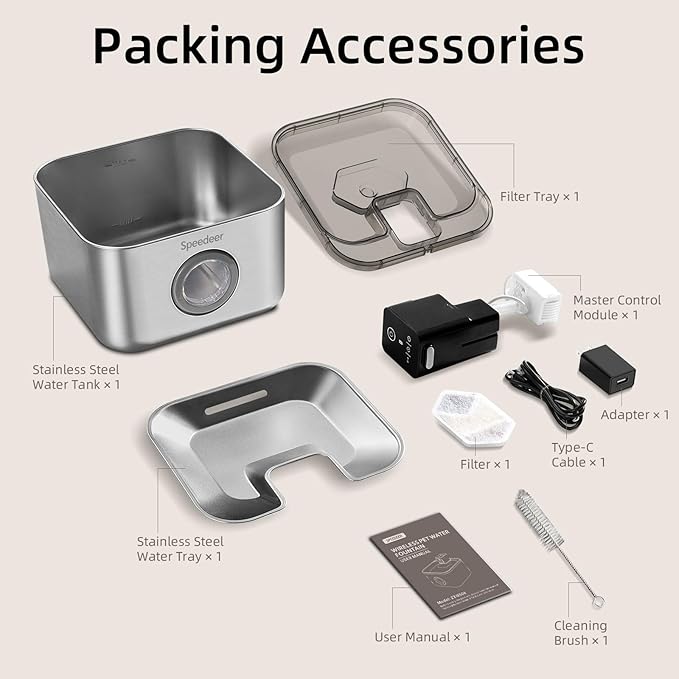 - [Easy Cleaning & Setup]: This wireless pet fountain assembles and disassembles in minutes, making maintenance effortless. Its smart design enables quick refills and filter cartridge replacements — freeing up your cleaning time so you can spend more quality moments with your furry companion.