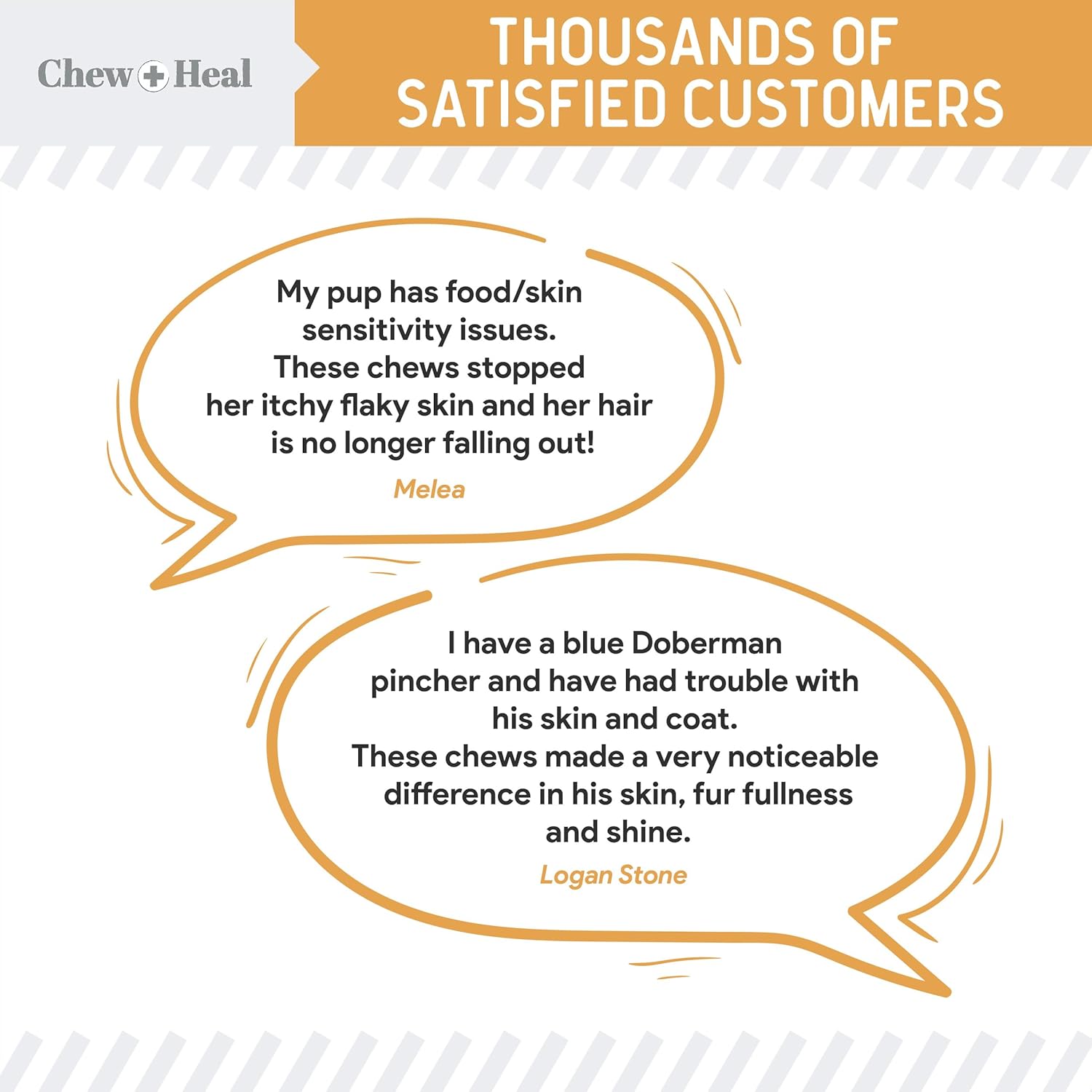 - PREVENTS SKIN ALLERGIES: This anti itch for dogs not only softens the skin, it gives it a glossy shine and helps prevent allergic reactions. This reduces dandruff and itchy skin, helping make your dog feel more comfortable in addition to being healthier! Say goodbye to greasy or dirty coats that have a unpleasant oily smell. These dog bites help kick-start the bodyโs natural processes to improve fur health.