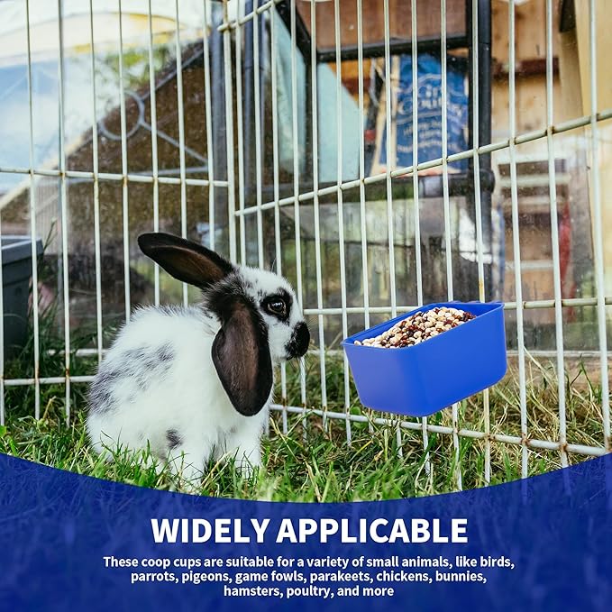 - 【High Quality】The material of the chicken cage feeding cup is high quality plastic, odorless, wear-resistant and sturdy.The edges of the chicken feeding and watering bowl are smooth and very safe for your birds, poultry, rabbits, chickens and small animals, you can use it with confidence.Bright colors can also attract pets' attention and enhance their appetite.