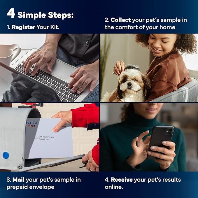 - EASY HAIR SAMPLE COLLECTION: Simply collect a few strands of your dog or cat’s hair and send them back using the prepaid return envelope. This non-invasive method allows you to complete the process at home, no appointments, vet visits, or stress for your pet.