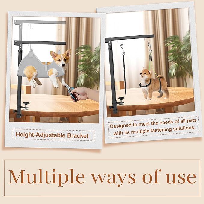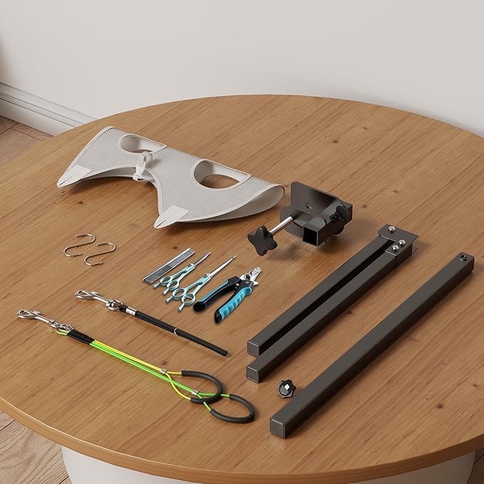 - 【All-in-One Professional Grooming Station】 Transform your pet grooming experience with our complete all-in-one kit! This professional bundle includes everything you need: a sturdy adjustable grooming arm, a secure safety hammock, sharp grooming scissors, and a reliable nail clipper. Save time and money by avoiding separate purchases, ideal for both professional groomers and dedicated pet owners seeking salon-quality results at home.
