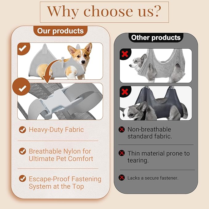 - 【Notices】 Size Guidelines for Better Fit: The grooming hammock fits dogs under 30 lbs with a maximum leg spacing of 11.2" and a hole width of 3.9". Please measure your pet before purchase for the best grooming experience.