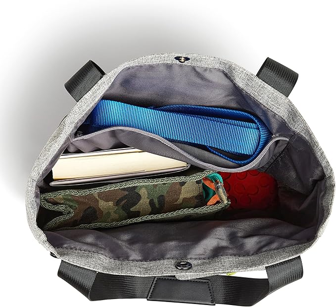 - EASY TO CLEAN – The tote is made from woven polyester with stylish vegan leather details, and features a wipe-clean coated base, making for easy cleaning. The travel bowl is dishwasher-safe!