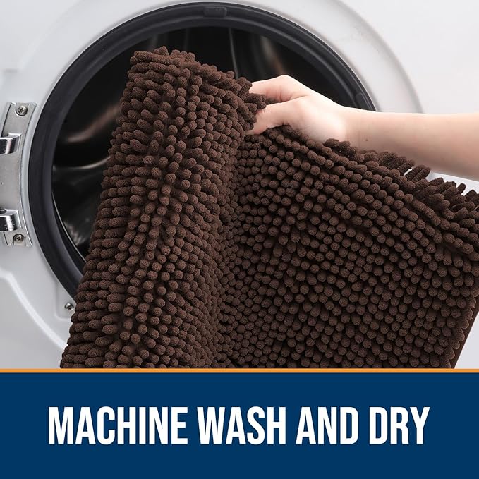 - [LOW PROFILE AND EASY CARE] OLANLY's Chenille Dog Door Mat boasts a slim 1-inch profile, offering a sleek and streamlined appearance. The thoughtful design ensures your doors won't get stuck, and the mat stays securely in place. Cleaning is a breeze β simply shake off any dirt or debris, or toss it in the washing machine for a deeper clean. It dries quickly, so you can be sure it's ready to use again in no time.