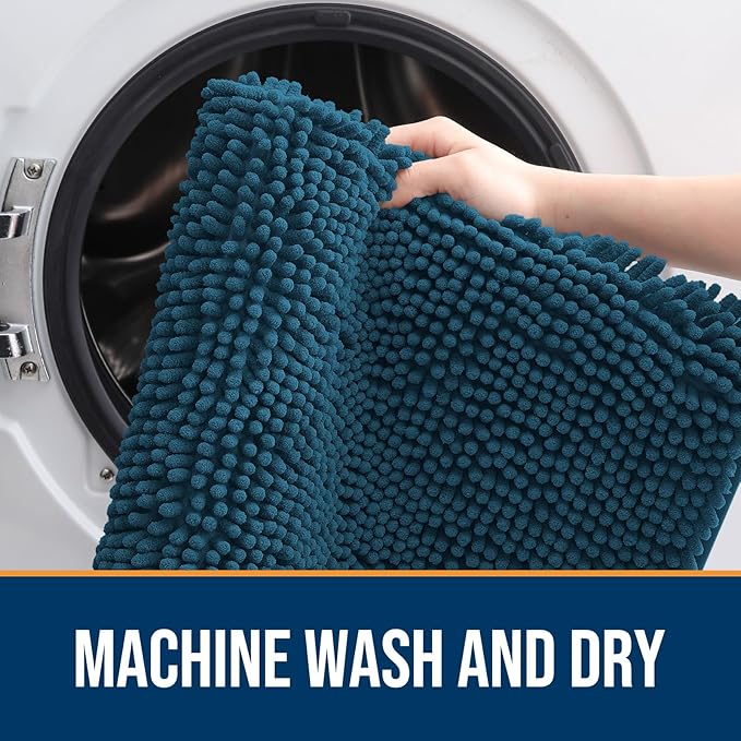 OLANLY Dog Door Mat Set 4-Piece 24x16, Absorbs Moisture and Dirt, Absorbent Non-Slip Washable Doormat, Quick Dry Chenille Mud Mat for Dogs, Entry Indoor Entryway Carpet for Inside Floor, Atlantic Blue