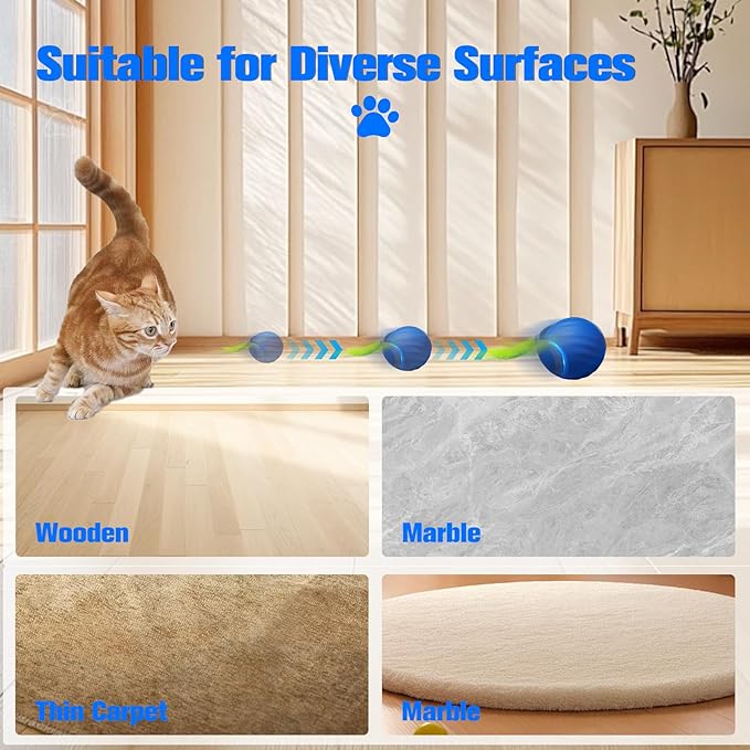 - 🐱DURABLE & SAFE DESIGN: Made from high-quality silicone and ABS materials, this toy is built to withstand rough play. Its wave-textured surface ensures smooth rolling on carpets and adds unpredictability to movements.