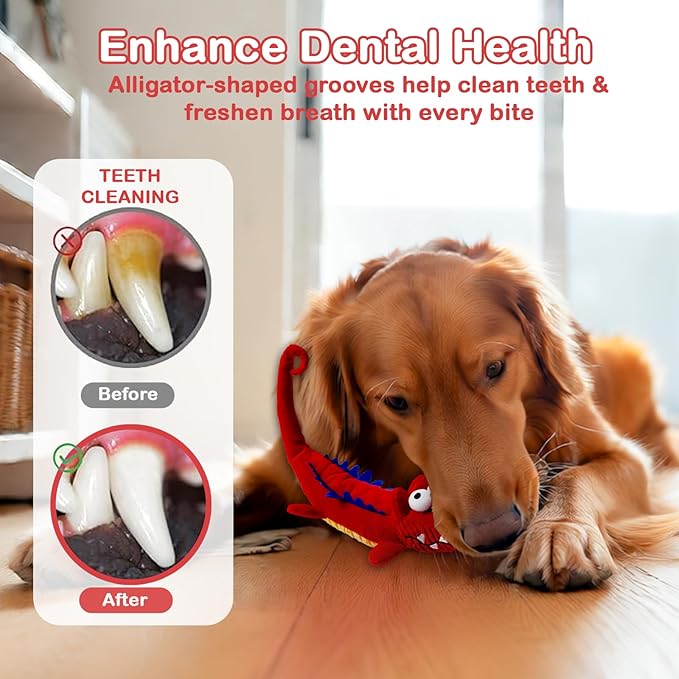 • Attractive Design and Suitable for All Breeds: Inspired by wild animals, the crocodile dog toy features charming patterns and fun textures that delight dogs. It is loved by dogs of all sizes. You can watch your dog pounce and shake this irresistible plush toy, as it stimulates their natural play instincts.