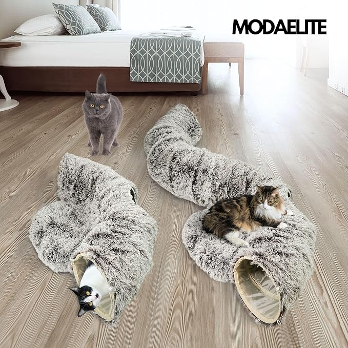 - 3-in-1 Convertible Design – Easily transforms into a donut bed, long cat tunnel, or two separate cave cat beds for indoor cats, adapting to every mood.