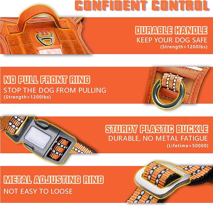 AUROTH Tactical Dog Harness for Large Dogs No Pull Adjustable Pet Harness Reflective K9 Working Training Easy Control Pet Vest Military Service Dog Harnesses Orange L