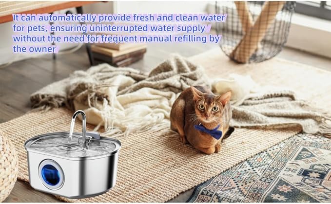 - 5.Attractive streaming design: Our stainless steel cat water dispenser imitates pets' natural preference for drinking flowing water, attracting your friends to drink more water, keeping them hydrated, and reducing the risk of kidney disease. In addition, flowing water increases the oxygen content, resulting in fresher and better tasting water that your pet will enjoy