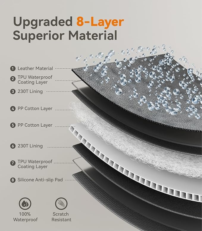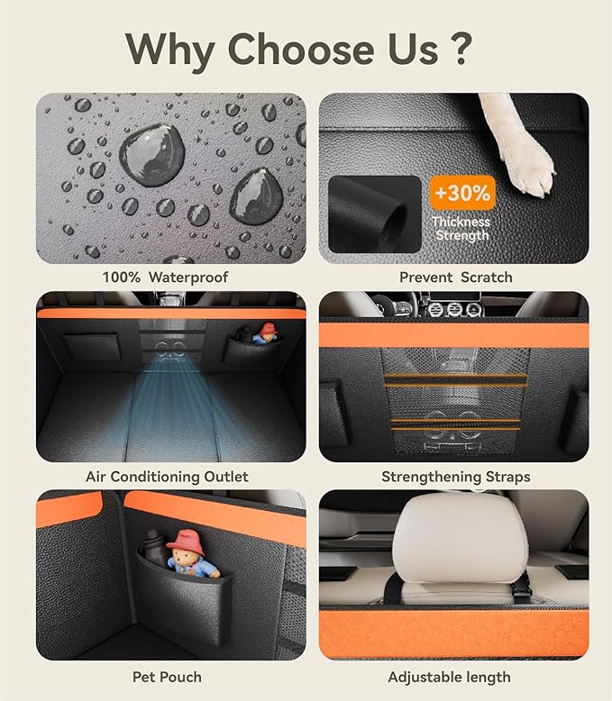 - ใ๐๐๐ญ๐๐ซ๐ฉ๐ซ๐จ๐จ๐ & ๐๐๐ซ๐๐ญ๐๐ก-๐๐๐ฌ๐ข๐ฌ๐ญ๐๐ง๐ญใThis back seat extender for dogs combines a 8-layer reinforced design (Thickened PU Leather + TPUwaterproof coating +PP Cotton Layer + EVA non-slip base) to defend against spills, muddy paws, and odors while shielding seats from scratches. Machine-washable and wipe-clean surfaces handle mud, fur, and accidents effortlessly.
