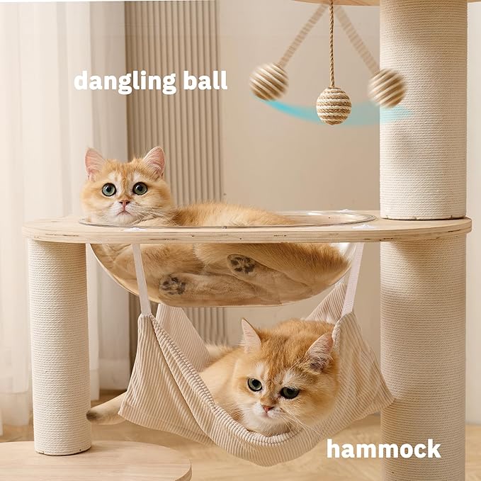 - đĄăAll-in-One Cat Tree Tower PlaygroundăHEASON multi-functional cat tree tower combines a cozy cat cushion, space capsule, hammock,dangling ball,interactive rope and fun cat scratching posts, offering the ultimate play, rest, and scratch space for your feline friend.