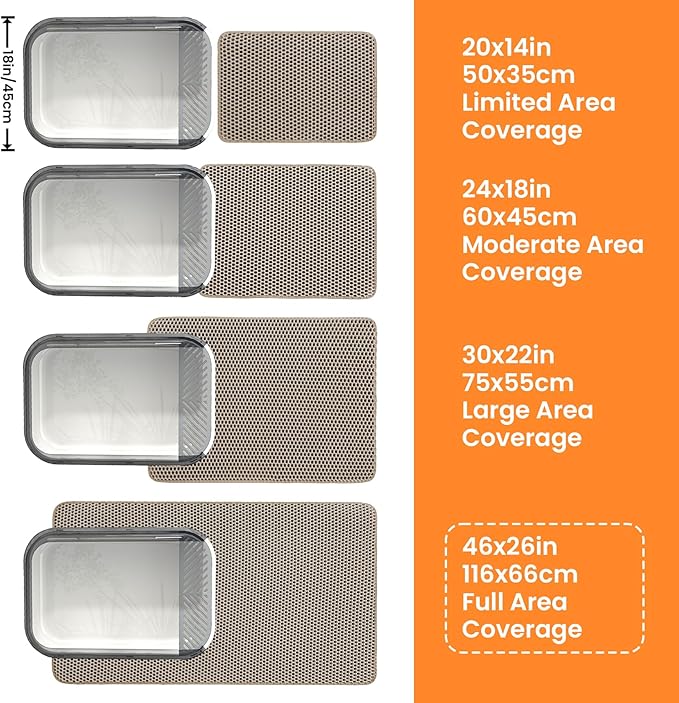 - The Ultimate XXL Litter Mat: Covering a generous 46x26 inches, this giant cat mat for litter box captures every stray piece of litter from cat’s paws and the floor, keeping home spotless. No more daily sweeping, no more lingering odors — just a cleaner, fresher home and more free time for you!