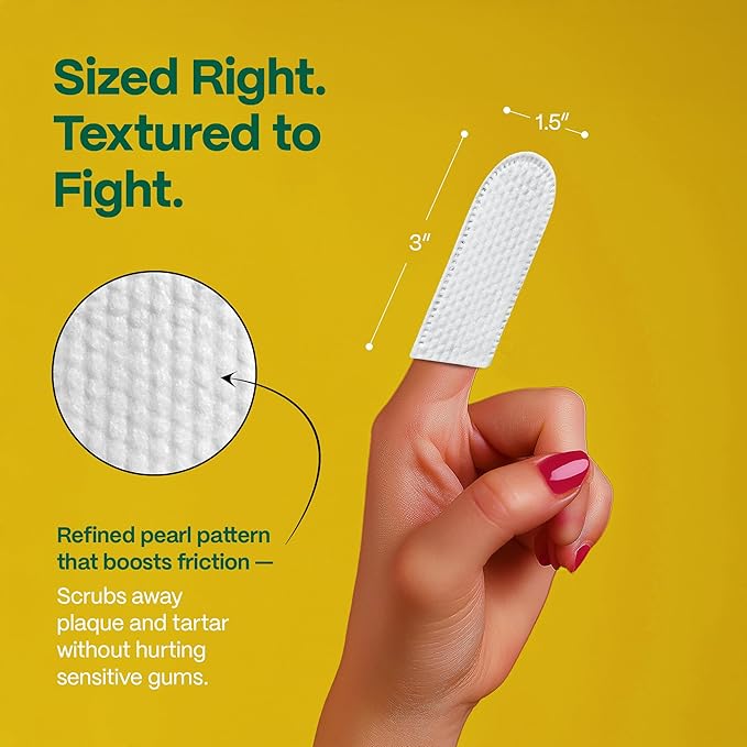 - Dog Tooth Brushing Kit: This dog dental care kit includes 50 wipes that are designed for easy use. Simply slip one over your finger and massage your pet's teeth and gums to reduce plaque buildup and promote fresh breath for both cats and dogs.