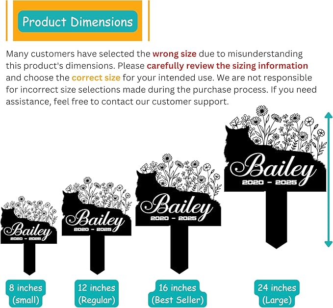 - Durable, Rust-Proof & Fade-Resistant – Our powder-coated metal grave marker is built to endure sun, rain, snow, and wind—keeping your cat’s memory safe and visible season after season.