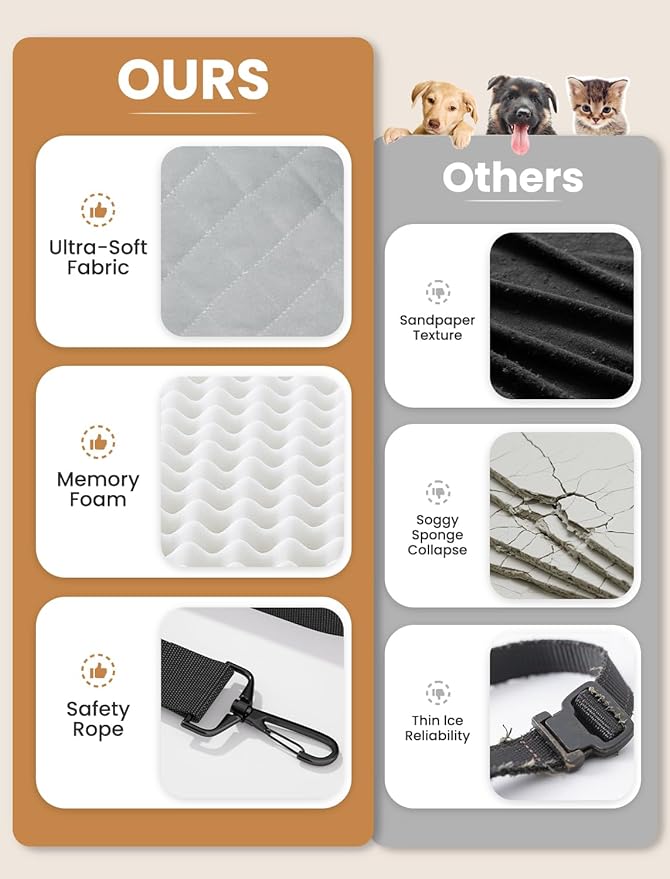 - Cloud-Like Comfort for Miles: Let your best friend travel in ultimate relaxation. The plush, premium-grade memory foam in this puppy car seat contours perfectly to your dog's body, reducing pressure points and fatigue for truly blissful car rides.