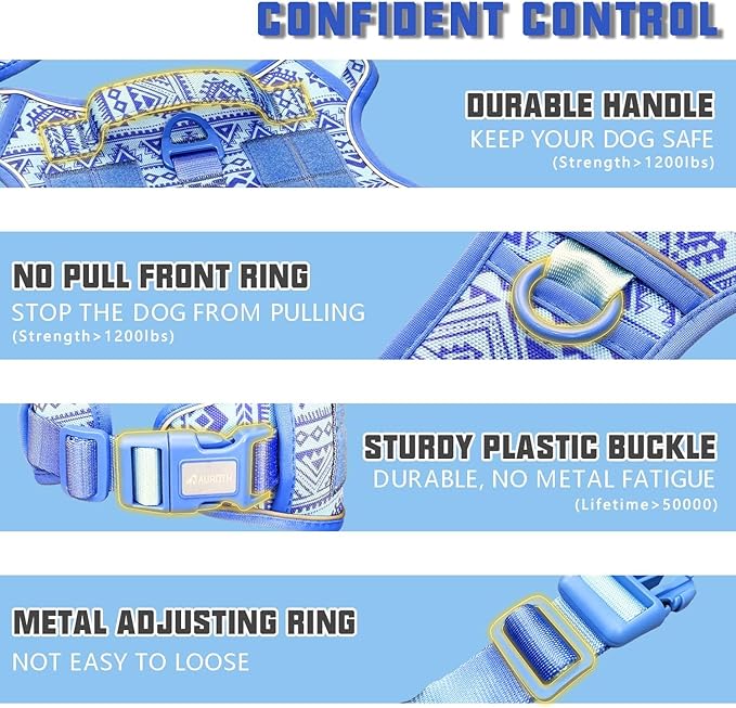 - 【Ultimate Control & SECURITY - Unleash the Power.】 Our no pull dog harness ensures maximum control for your dog with two metal leash attachment points. The front clip provides no-pull control and is great for training, while the back clip is perfect for casual walks or jogging. Walk your dog with confidence and security.