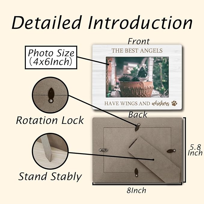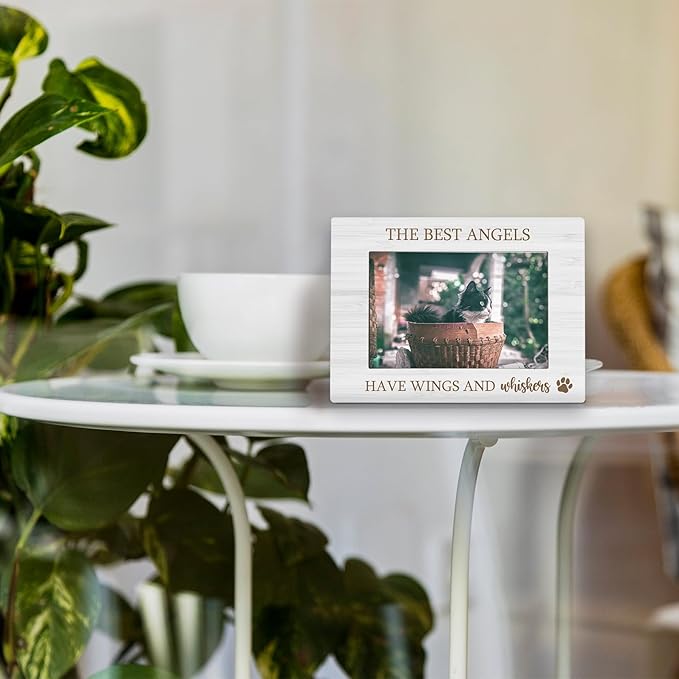 Dog Cat memorial 4x6 Picture Frame, Gifts for Pet Owner Photo Frame, Pet Memorial Gifts for Loss of Dog, the Best Angels Have Wings and Whiskers Picture Photo Frames for Desk Decor