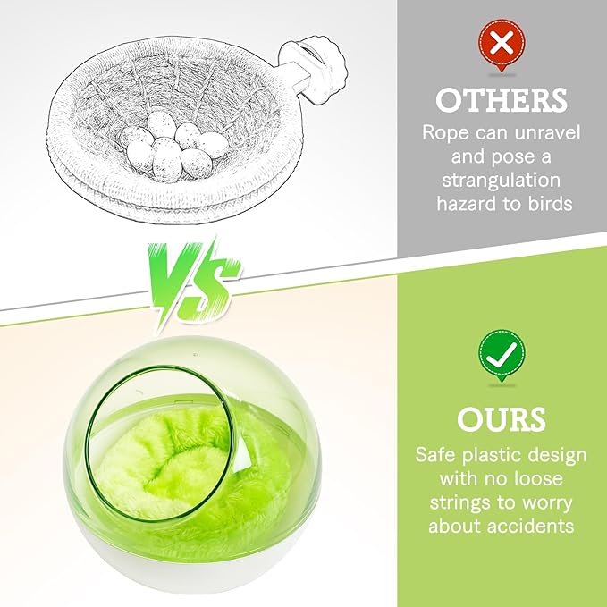 - WARM BIRD CAGE BED: Our plastic bird bed for cage is sturdy and enduring; it r-esists chewing; it can be easily disassembled in half and thoroughly cleaned; this ensures a hygienic and s-afe environment for your pet bird; the bird nest for cage is available in four colors; the different colors allow you to adjust the atmosphere of your pet bird's residence according to the seasons or changes in your mood; it meets your daily use and replacement needs