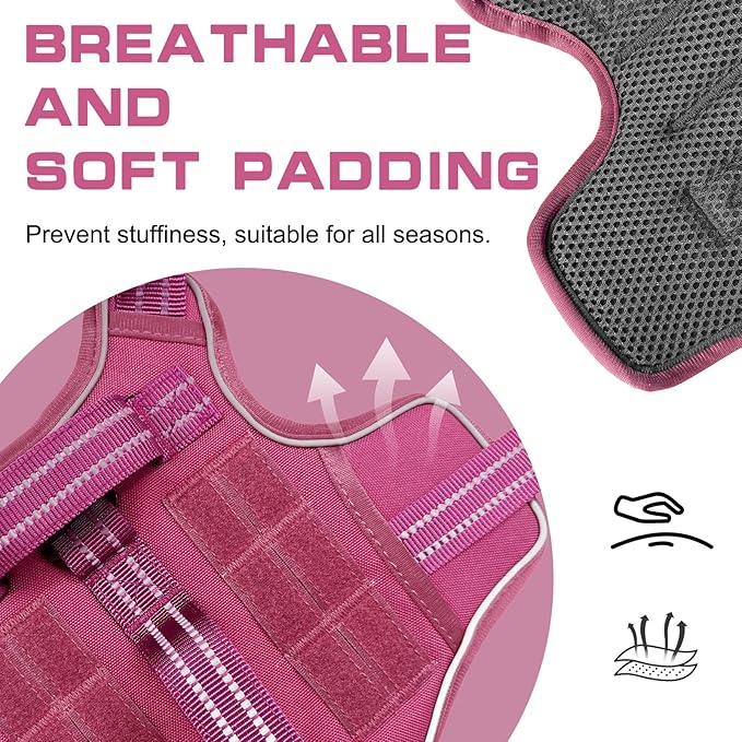 - Easy Control: The front metal leash ring is designed for no-pull control, making it perfect for training or dogs that frequently pull, while the rear ring is ideal for leisurely walks, jogging, or hiking. The dog harness features horizontal and vertical nylon handles for easy grip on your dog.