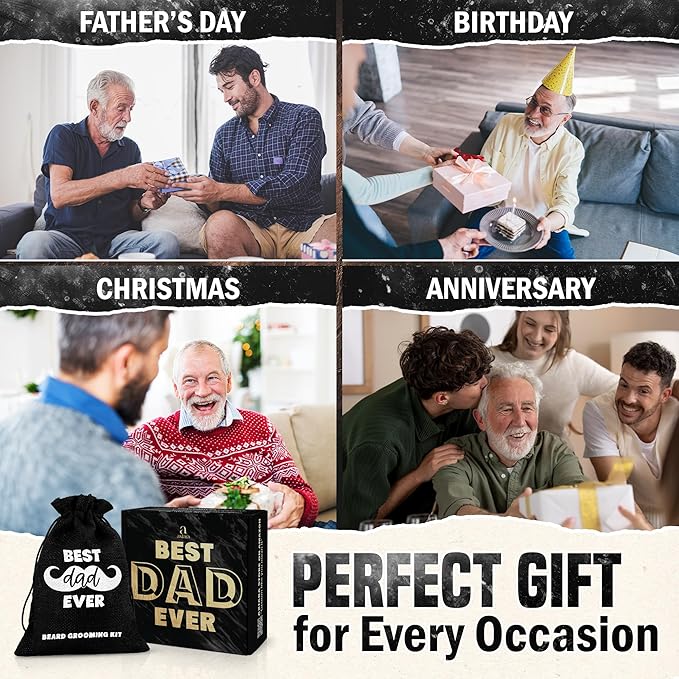- GIFTS FOR ANY OCCASION - Whether it’s Father’s Day, a birthday, or a just-because moment, this grooming kit makes an ideal present for any proud bearded dad. Use it for Fathers Day card from wife, Fathers Day gifts for grandpa, funny Fathers Day card, dad beard kit, or Father Day gift box. A premium way to say: “Thanks for being an awesome dad!”