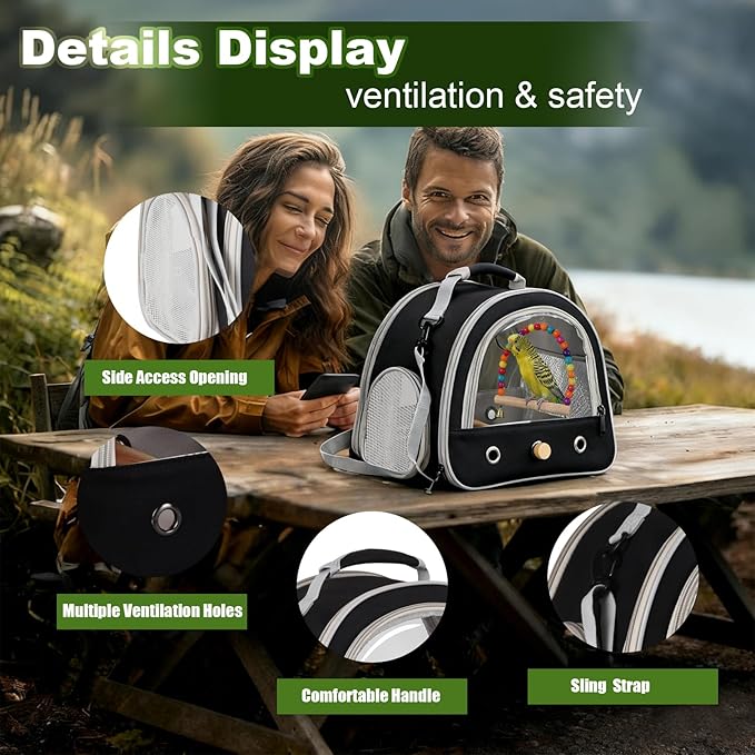 - Breathable & Comfortable: This portable parakeet travel carrier cage has a roomy space, built with bite resistant ventilation net on each side, and three vent holes total 6 in front and back, ensuring fresh air and airflow for fur children without worrying about suffocating in outdoor activity.
