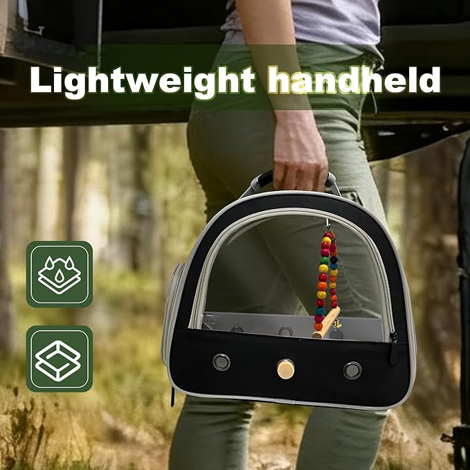 - New Update Design: 2-side transparent window design small bird carrier cage, meet with that pets like to pay close attention to the surrounding environment, and allows you to see parrot everything inside the handbag. At the same time, the transparent window is separated from the bottom of the zipper, making it easier and safer for pets to enter and exit