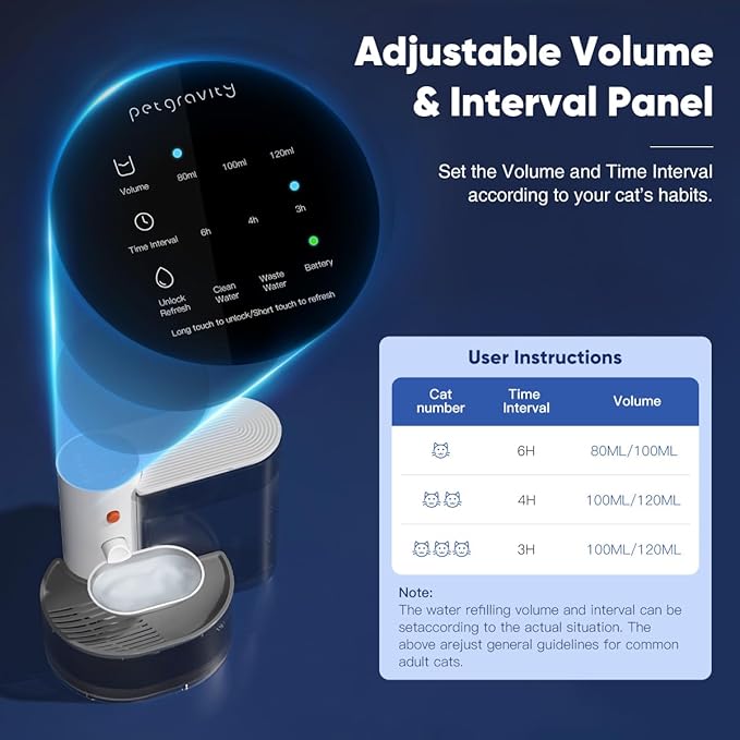 - Always Fresh Water - Smart system automatically replaces old water with fresh water. Your pets get clean water every time, perfect for cats and small animals.