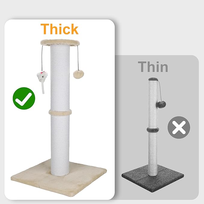 Cat Scratching Post 34 Inches Heavy Duty and Thicker Cat Scratching Post Sisal Rope with Hanging Ball and Mice Scratching Post for Indoor Cats and Adult(Beige)