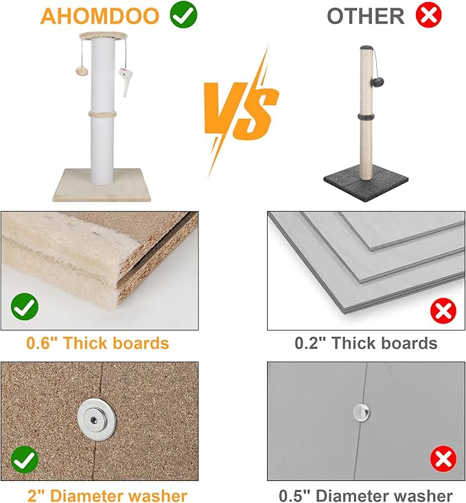 - Extra-Tall Design: Large scratching post often feature an extra-tall design, providing cats with an extended vertical surface to stretch and fully engage their muscles. 34inch height allows cats to indulge in their natural climbing instincts and provides them with a secure and satisfying scratching experience.