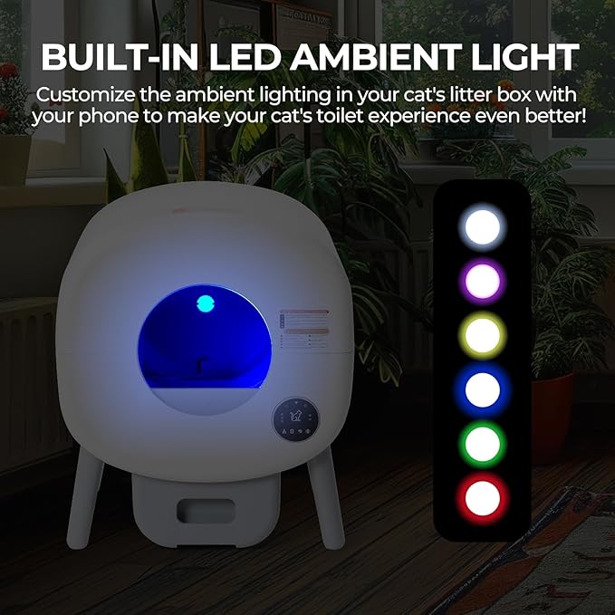 Self Cleaning Litter Box: Extra Large Automatic Litter Box Self Cleaning for Multiple Cats, Odor-Free, App-Controlled, Ambient Light Waste Disposal