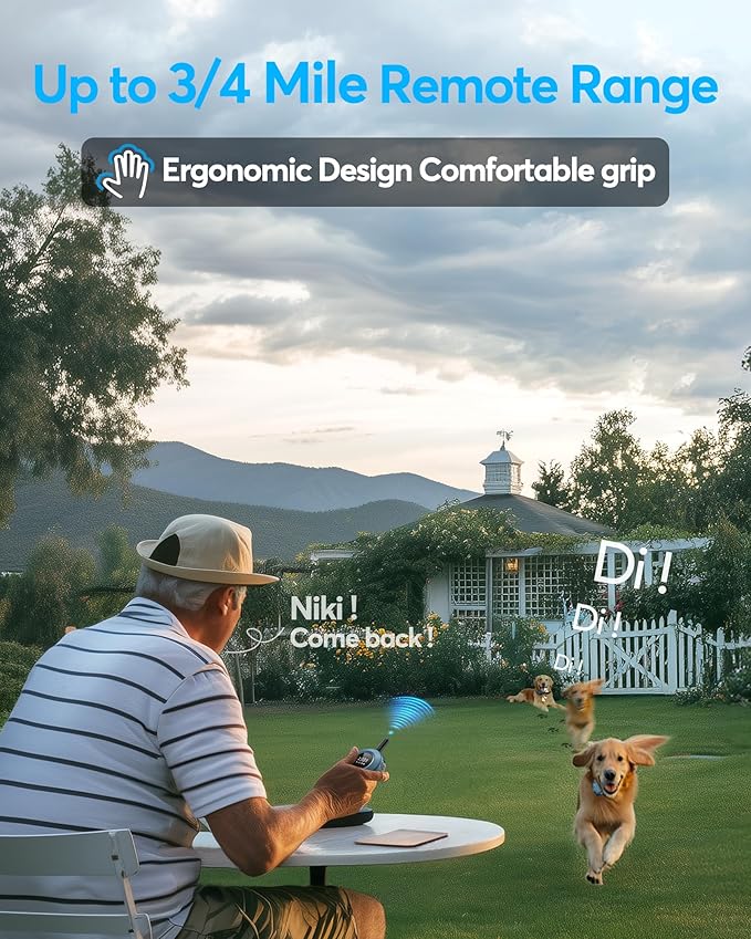 - 【3/4 Mile Range & 2 Channel】The dog shock collar covers up to 3/4 Mile providing a stronger and more stable signal, ensuring you can enjoy training time with your dog in the outdoor, backyard, park, or anywhere else. With dual-channel, one remote supports 2 receiver collars, and you can train 2 dogs at the same time! Besides, it has a memory function without resetting it.