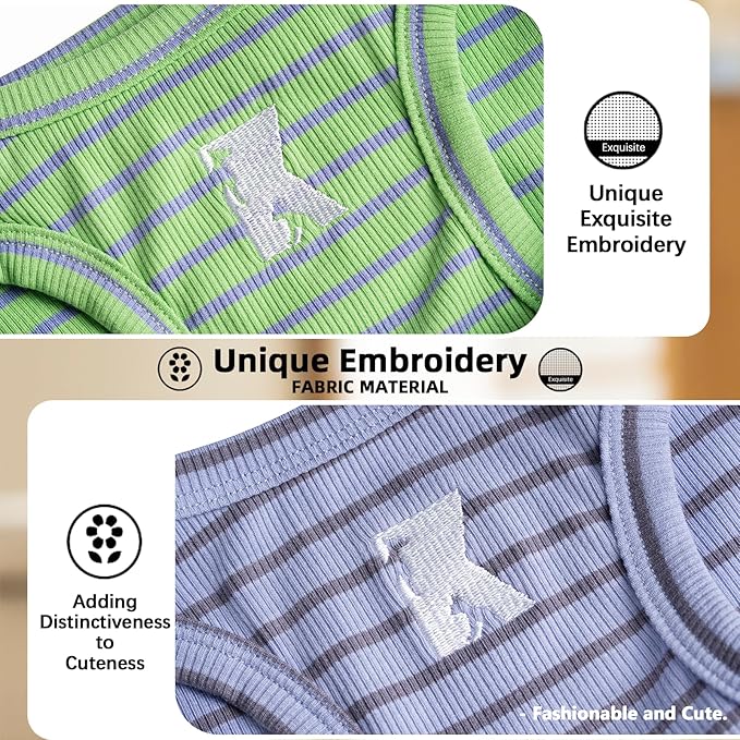 Koneseve Dog Shirts 2 Pack Breathable Sleeveless Vest, Stretchy & Soft, Purple & Vivid Green, Size L
