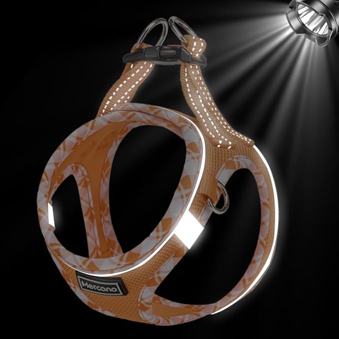 Mercano Soft Mesh Dog Harness and Leash Set, No-Chock Step-in Reflective Breathable Lightweight Easy Walk Vest Harnesses with Safety Buckle for Small Dogs, Cats (Orange, S)