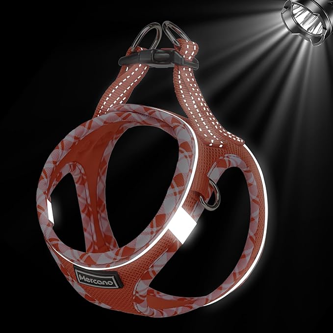 Mercano Soft Mesh Dog Harness and Leash Set, No-Chock Step-in Reflective Breathable Lightweight Easy Walk Vest Harnesses with Safety Buckle for Small Dogs, Cats (Tangerine, S)