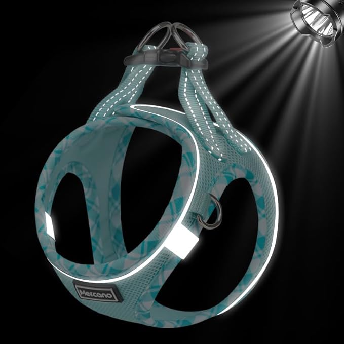 Mercano Soft Mesh Dog Harness and Leash Set, No-Chock Step-in Reflective Breathable Lightweight Easy Walk Vest Harnesses with Safety Buckle for Small Dogs, Cats (Light Blue, S)