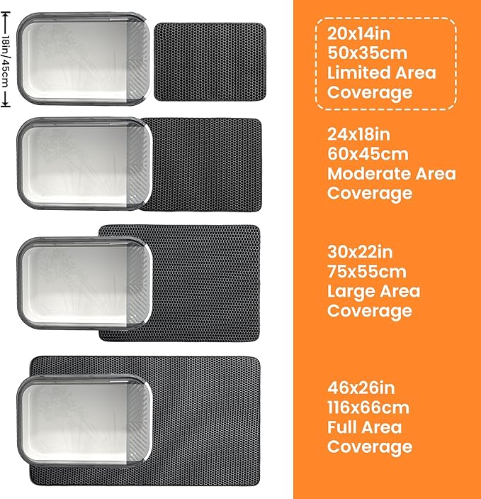 - Double Layer Honeycomb Structure: The top layer with holes captures all types of litter including crystal, clay, tofu and more, letting it fall into the waterproof bottom layer for easy cleanup. Simply pick up the litter catcher mat, pour the litter back into the box and reuse it. This smart design reduces litter waste and simplifies your daily cleaning, making it an essential cat supply.