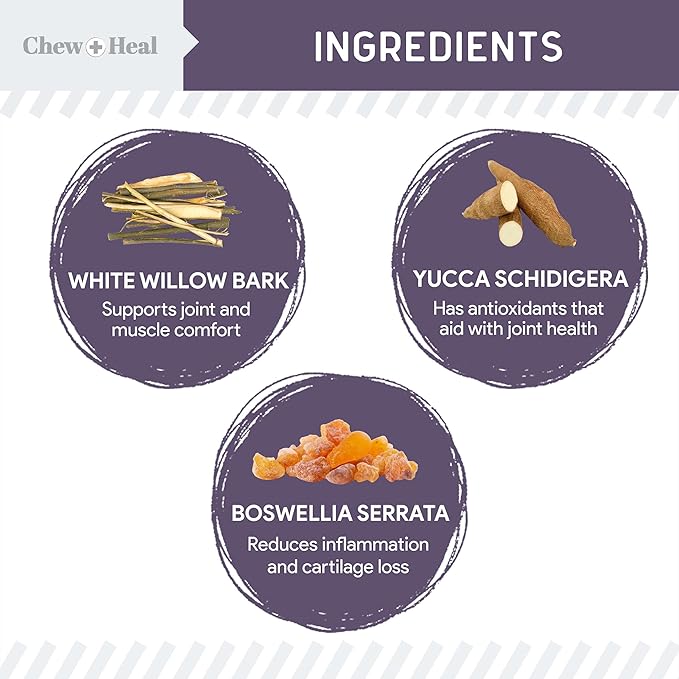 - Yucca schidigera, Boswellia serrata, and S.O.D. (superoxide dismutase) can help alleviate pain and discomfort while promoting joint and cartilage health.