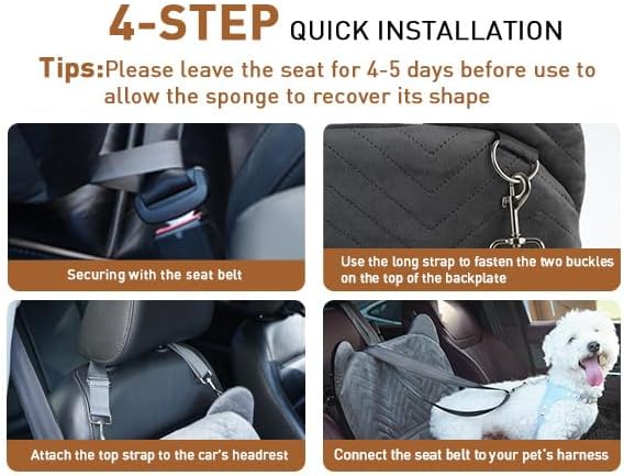 - Easy Installation and Maintenance:This dog booster car seat is ready to use right out of the box - no complicated foam assembly required. Simply thread the puppy car seat belt through the designated holes on the bottom and secure the top strap to the car headrest. Adjust the straps to the right length, and the car seat is ready to go!