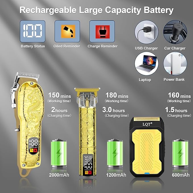 LQT® Professional Hair Clippers for Men, Hair Trimmer Cordless Barber Clippers and Trimmers Set, Hair Cutting Kit for Men Grooming Father Day Gifts