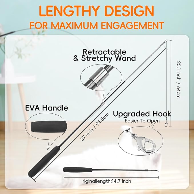 - [Excellent Cat Feather Replacements Lovers]: Suitable for all adult cats and kittens, this cat fishing pole toy makes a perfect gift for birthdays, Christmas, Thanksgiving, or New Year's Day. Your furry friend is sure to love it