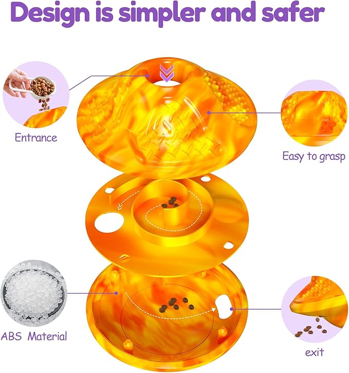 - New type of slow feeder toy for you dog birthday:It is different from traditional dog bowls slow feeder,The more actively dogs scroll, the more surprised dogs are when food drops from the food outlet! Continuously stimulate the dog's desire to explore and keep it focused and engaged,Trust me, your dog will be very happy with a leaky food as a gift, which can also be used as a cat puzzle toy and cat treat puzzle