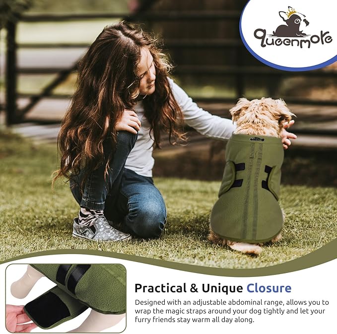 Queenmore XL Dog Sweaters, Soft Fleece Vest Pullover Dog Jacket with Leash Hole, Warm Winter Dogs Clothes Cold Weather Doggy Dachshund Sweater for Large Dogs Cats Boy or Girl (Army Green, XL)