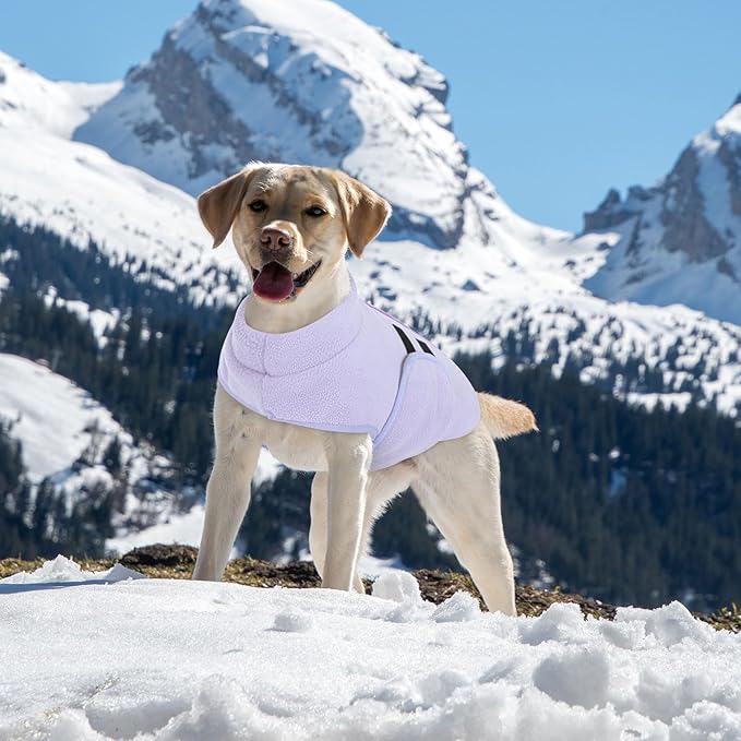 Queenmore Large Dog Sweater, Soft Fleece Vest Pullover Dog Jacket with Leash Hole, Warm Winter Dogs Clothes Cold Weather Doggy Dachshund Sweaters for Large Dogs Cats Boy or Girl (Lilac, L)