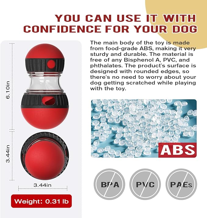 - Safe Material&Design:The main body of the toy is made from food-grade ABS plastic and free of BPA,PVC and Phthalates to ensure it's no harm to your dogs;and the Toys's surface is a rounded edge shape,no worry any hurts or injury while the pets is playing.